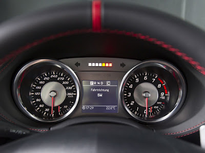 SLS AMG GT's 6.2-liter V8 has been ratcheted up by 20hp for a total output of 583hp. Torque remains the same at 479 lb-ft while a revised seven-speed AMG Speedshift dual-clutch gearbox transmits power to the rear wheels.Speaking of wheels, the 2013 Mercedes-Benz SLS AMG GT wears 19-inch alloys wrapped in 265/35-series rubber up front while 20-inch wheels wrapped in 295/30-series rubber are fitted on the rear. The SLS AMG GT utilizes them to sprint off the line to 60mph in a tenth of a second faster than previous versions, clocking in at 3.6 seconds.